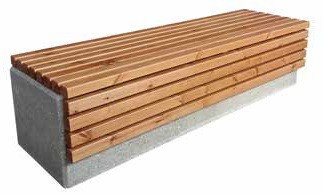 banc extérieur en béton et bois a une structure réalisée entiérement en béton classique associé à du fer.