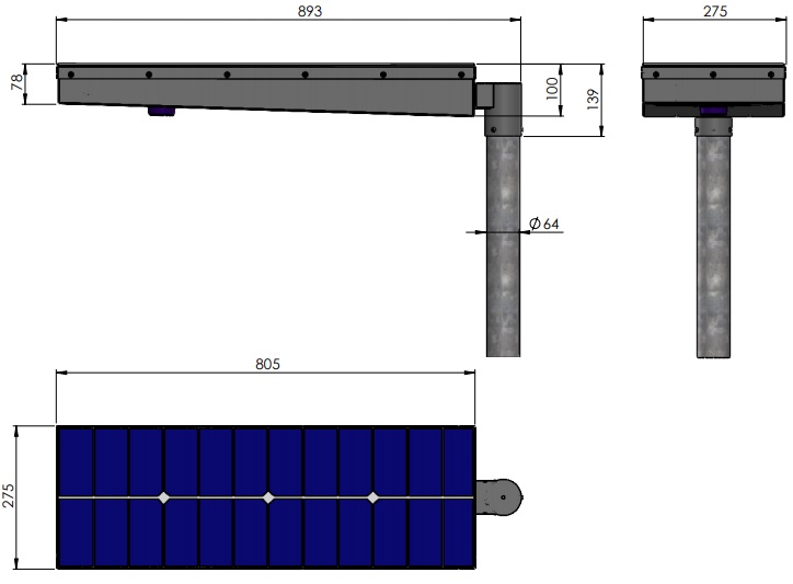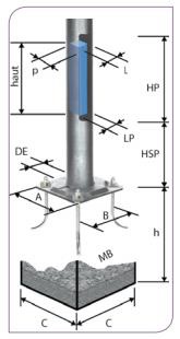 Le mât galvanisé de 5 m (ou 4 m sur demande) peut être fourni avec finition laquée.