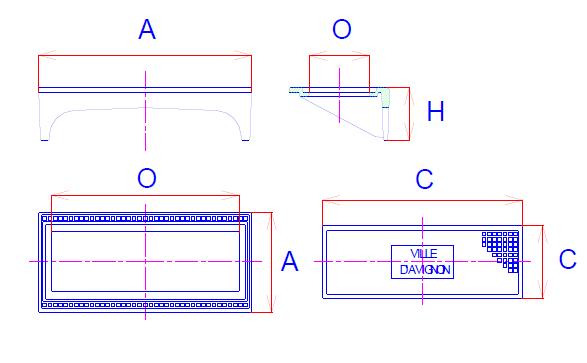 - C : Dimension du tampon : 800 x 290 mm