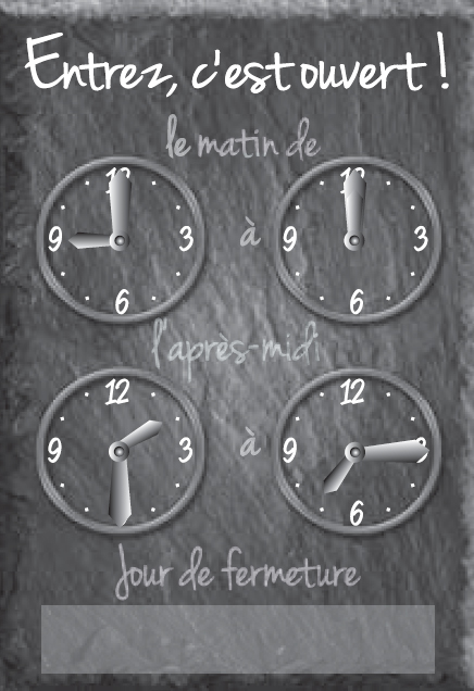 Un support utilisé par les professionnels pour indiquer les horaires d’ouverture et de fermeture aux clients.