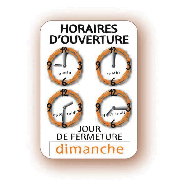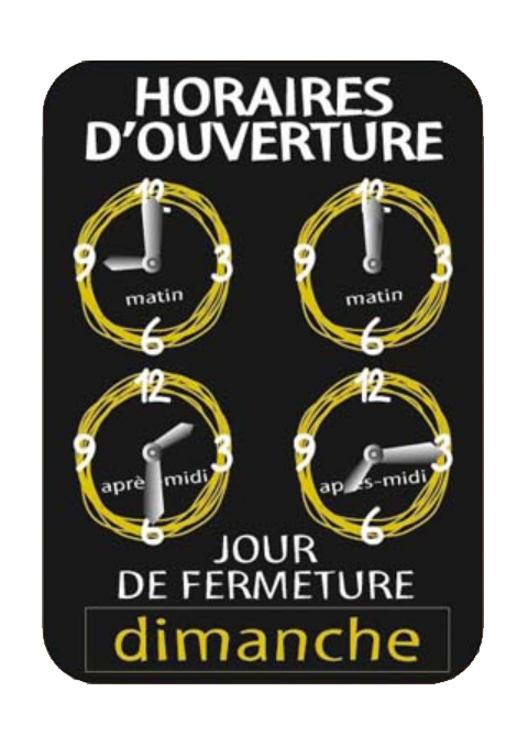 Ce panneau d’horaires est conçu pour les magasins exerçants tous types d’activité commerciale.