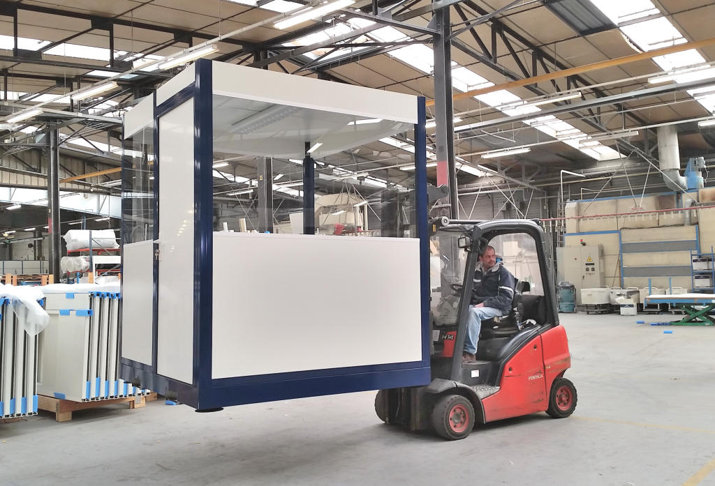 3 Cabines Palettisables isolée avec laine de 12m3 ( 4M/3M ) avec 1 porte et vitre sur un coté des 3M avec bloc éclairage et électrique