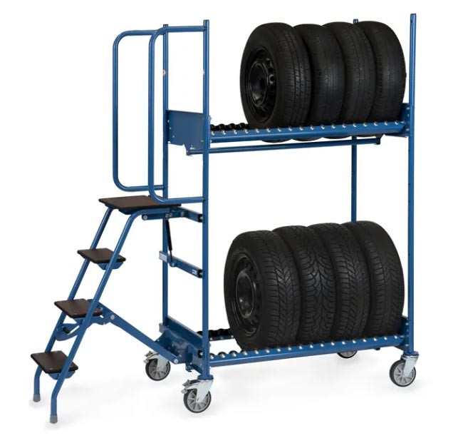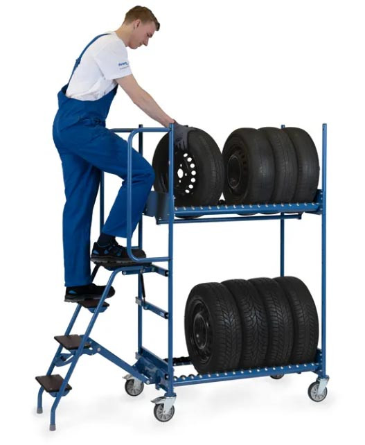 Chariot pour pneus avec marchepied et support de sécurité