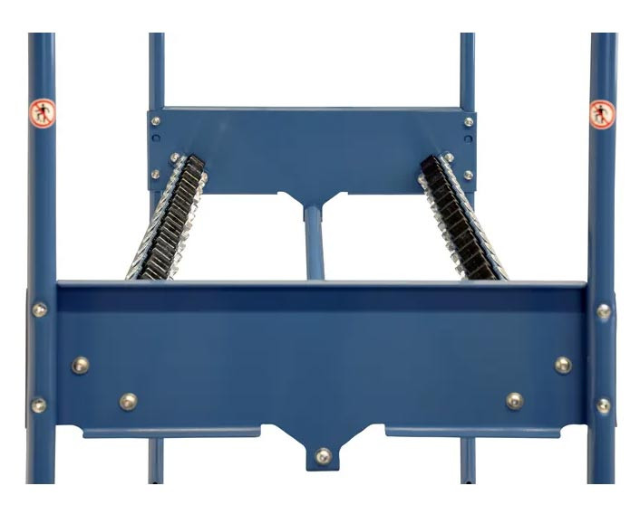 Le marchepied se soulève quand les marches sont libres et s'appuit sur le sol par le poids de l'utilisateur et bloque le chariot.