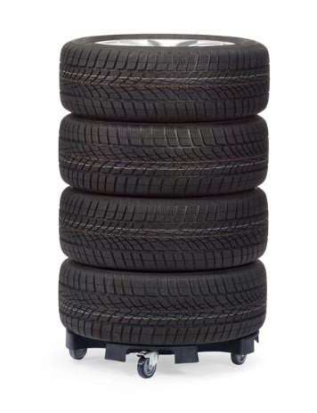 Ce rouleur pour pneus est conçu pour un transport aisé et un stockage efficace des roues et pneus de taille normale.
