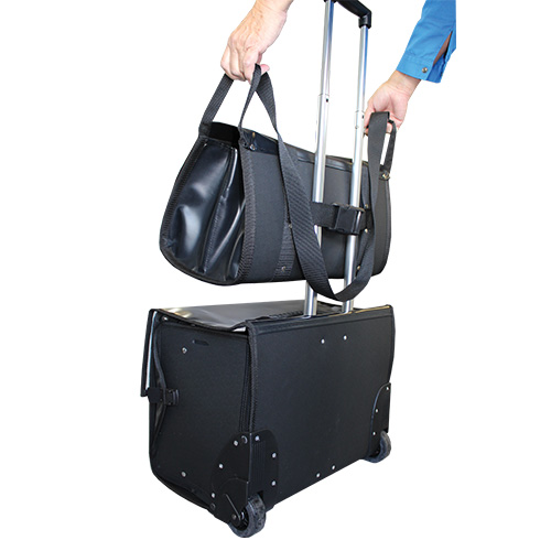 - 1 sangle avec fermoirs sur l’arrière pour fixation sur canne du trolley du grand rangement organisé à roulettes