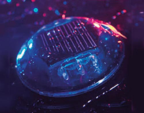 Plus de 72 heures d’autonomie pour un plot chargé au maximum (charge atteinte en 8 heures d’exposition de jour). Étanche (IP68), visible à plus de 500 mètres et résistant à une pression de 10 tonnes