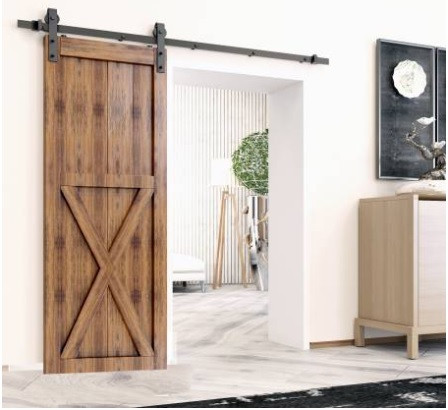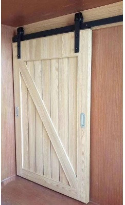 Dispositif pour porte en bois qui se déplace le long d'un rail fixé au-dessus de l'ouverture de la porte, permettant ainsi d'économiser de l'espace par rapport aux portes traditionnelles à charnières.