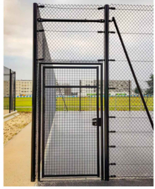 Le kit inclut une porte de 1,2 x 2 m en acier galvanisé plastifié Ø 70 mm, dimension idéale pour les entrées de terrain de tennis, l’accès des joueurs et le passage d’un chariot d’entretien ou d’un souffleur.