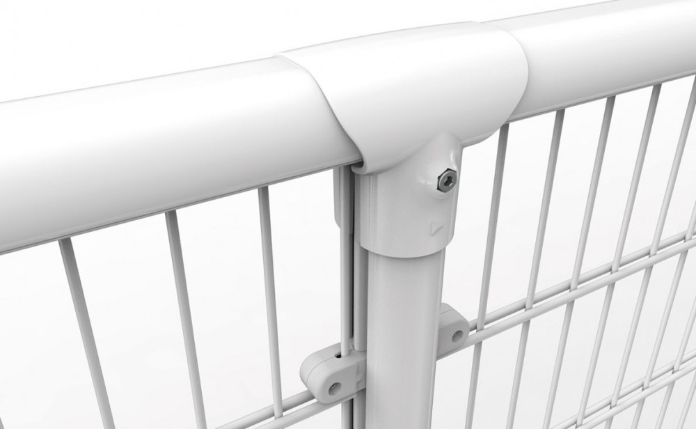 Ce système permet de fixer une grille de 1 m de hauteur dans l’axe de la main courante, en l’intégrant directement dans la lisse et dans les poteaux.