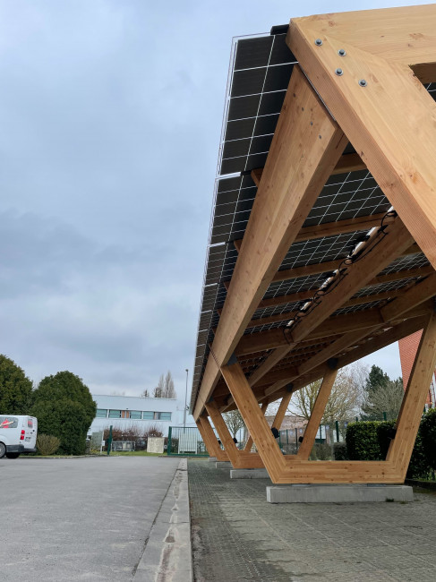 Ces ombrières photovoltaïques sont conçues en bois lamellé-collé d’origine française certifiée.