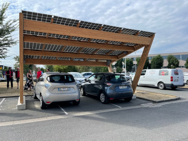 Ces ombrières photovoltaïques en bois permettent d'habiller vos espaces de stationnement tout en produisant de l’énergie durable.