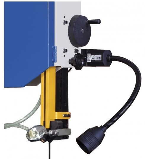 Cette scie à ruban est également dotée d’une unité complète de soudage de lame, d’une lampe et d’une table de travail.