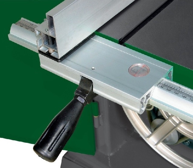 Cette scie est livrée avec un ensemble complet d'accessoires, notamment une lame, une butée parallèle, une butée angulaire, un guide-lame 3 points en haut et en bas, une lampe de travail LED et un poussoir.
