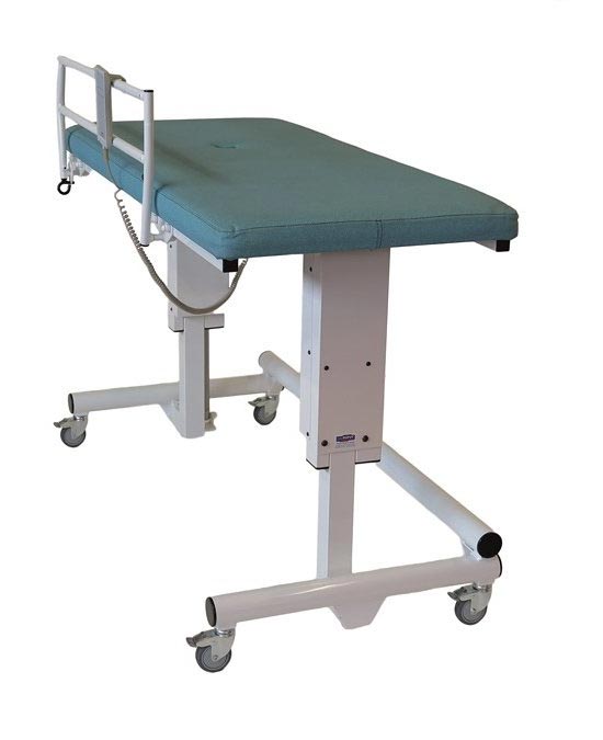 07/10/2022Table de change à hauteur réglable électriquement d"environ 50cm à 100cm sans déport, d"une largeur de 80cm et d"une longueur de 180-190cm, avec un matelas, une barrières fixe ou escamotable en bout de table et une barrière escamotable sur le long coté, à roulettes avec freins, ou frein central.