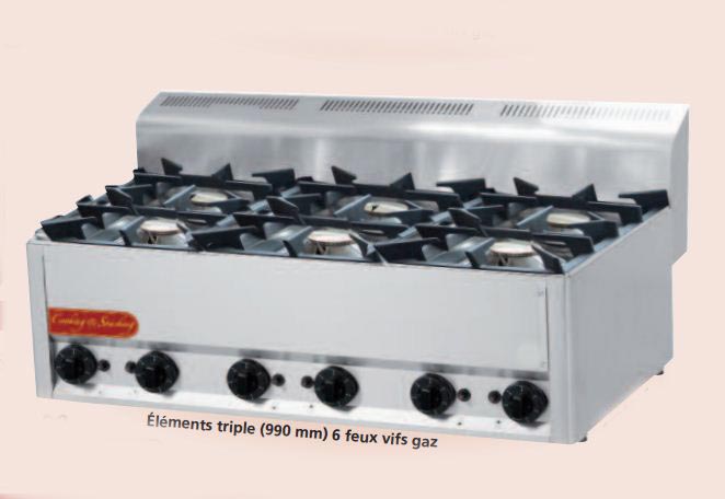 Table de cuisson gaz en inox 6 feux vifs gaz :