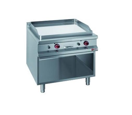 - Fry top gaz, plaque chromée 2/3 lisse, 1/3 rainurée