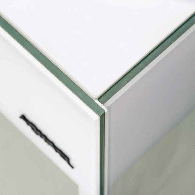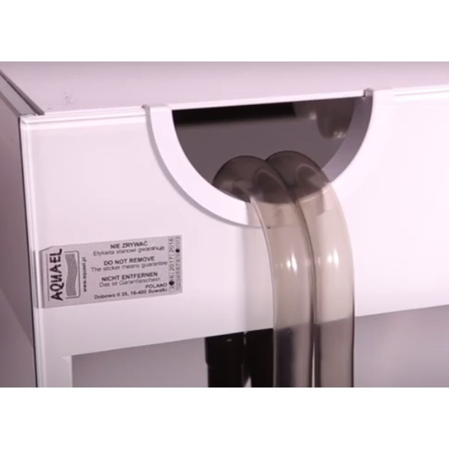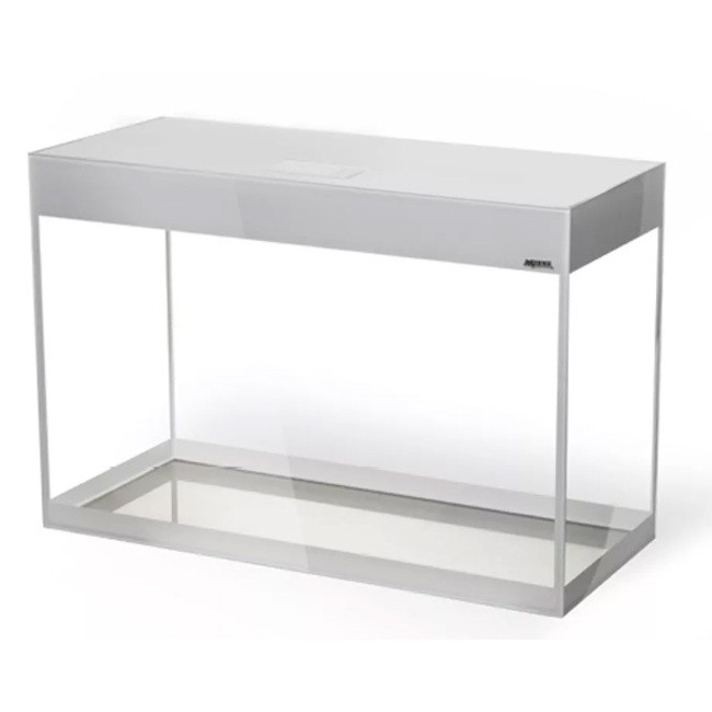 Le meuble qui accompagne l'aquarium est raffiné et solide, avec une finition laquée ultra-brillante et des portes acryliques qui brillent comme du verre.