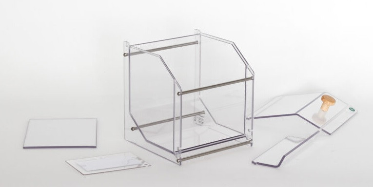 Les boutons du présentoir avec couvercle bénéficient d'un traitement contre les microbes, bactéries, virus et coronavirus (dont la Covid-19).