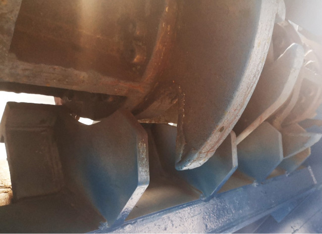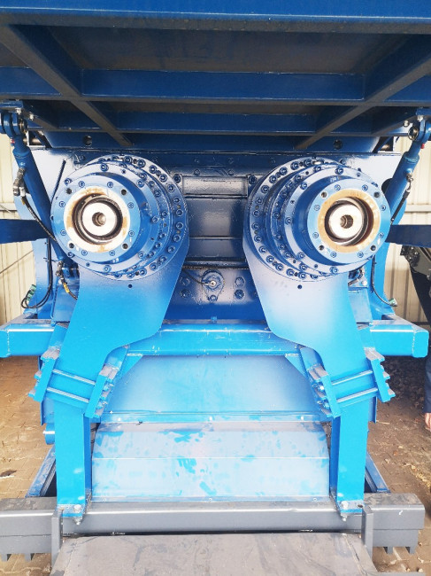 Unité de broyage à 2 rotors de diamètre 660 mm et long de 2260 mm avec arbres acier surdimensionnés et outils de grande capacité broyant dans les 2 sens et remplaçables (fixation par vissage).
