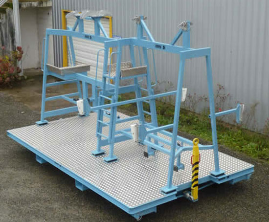 Nous vous proposons notre chariotnacelle pour pièces d’avions qui est un moyen idéal pour la manutention de capots de moteur d’avions.