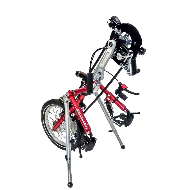 Fabriqué avec les mêmes éléments et le même souci du détail que les handbikes pour adultes, il garantit une conduite fluide et fiable pour les plus jeunes.