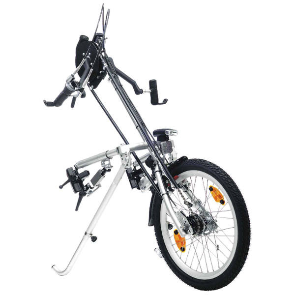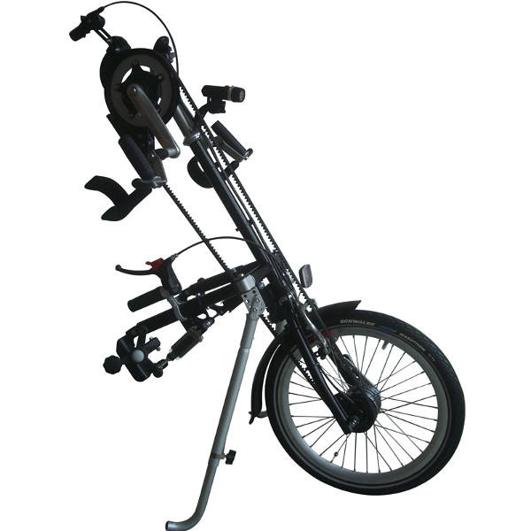 Ce handbike est proposé avec l'option "tétra", ce qui le rend adapté à une large population de personnes à mobilité réduite.