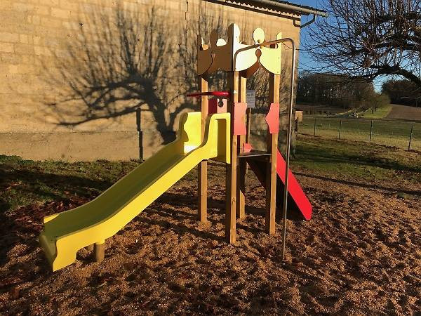 Vous pouvez installer ce château de jeux avec toboggan dans une école, un parc, une aire publique ou un jardin collectif.
