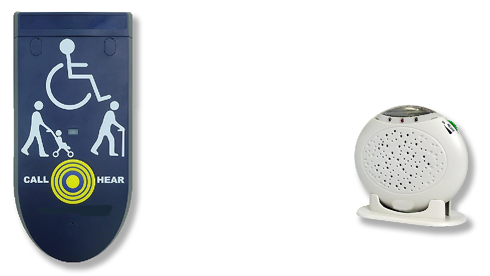 Cette borne est reliée à un récepteur sans fil qui peut être placé dans une réception, et qui va sonner ou émettre un signal pour indiquer que le visiteur a besoin d'aide.