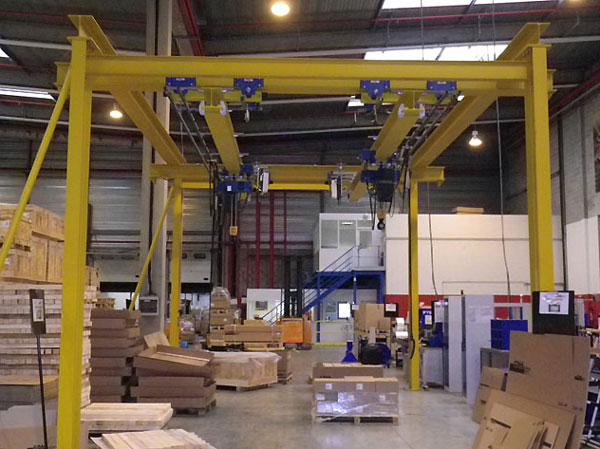 Si nécessaire, nous assurons la réalisation complète de l'équipement de manutention, c'est-à-dire, le pont roulant et le chemin de roulement sur poteaux indépendants du bâtiment existant.