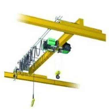 - Alimentation électrique par câble traînant le long de la poutre porteuse et boîtes de commande suspendues.