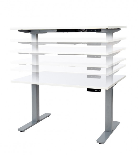 La structure du bureau, avec piètement carré et barre stabilisatrice centrale, garantit la stabilité même à la hauteur maximale et permet une capacité de charge impressionnante de 120 kg.