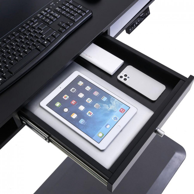 Le bureau assis debout mono-moteur SPACE LIFT 110x60cmpermet de ranger votre ordinateur portable ou votre tablette confortablement.
