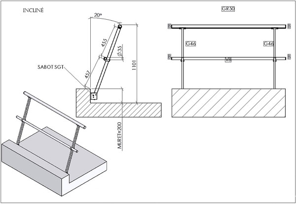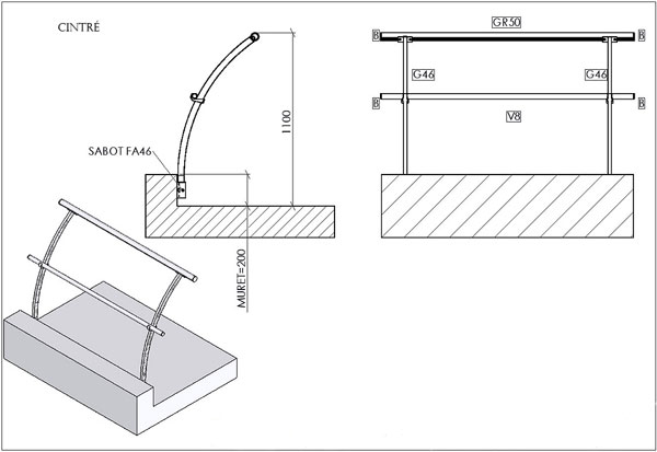- Types de garde-corps disponibles : Droit, incliné et cintré