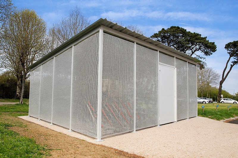 - Structure métallique renforcée avec des parois pleines et un grillage sécurisé