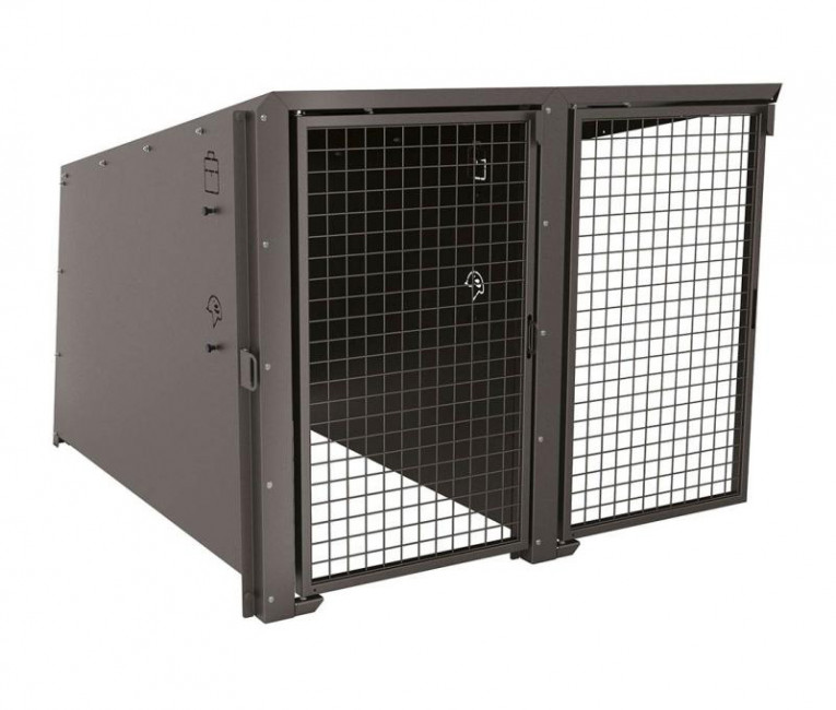 Grillage carré fil de Ø 5 mm soudé sur un cadre, finition acier galva ou peint sur galva. Verrouillage de la porte par cadenas (non fourni). Ouverte et fermeture des portes à l’aide d’un vérin
