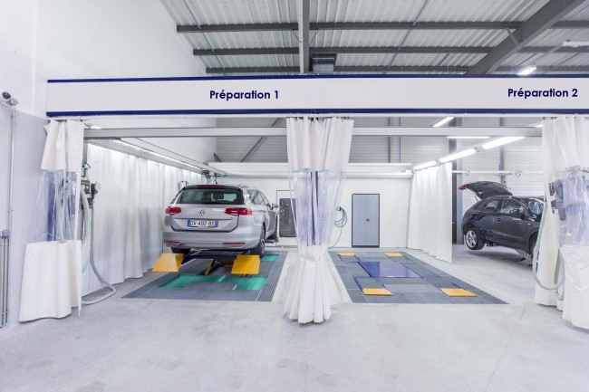 Plusieurs options et variantes possibles : compensation d'air chaud avec ou sans plénum / concept de ponçage par aspiration centralisée avec satellites ou bornes multi-énergies / tables élévatrices prise sous coque ou prise sous roues / portique suspendu IR ou combi IR/UVA, etc…