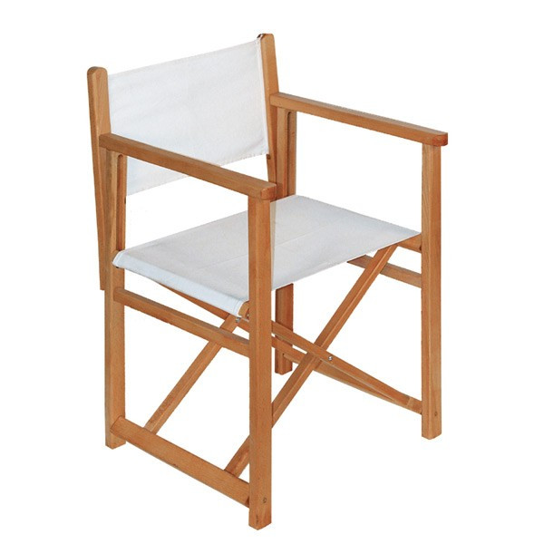 - Fauteuil metteur en scène avec accoudoirs et pieds en X, assise et dossier en toile