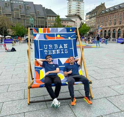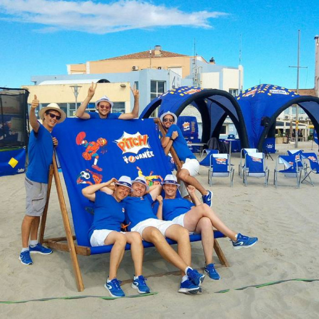 Transat géant publicitaire en bois - avec impression personnalisée - pour 3/4 personnes