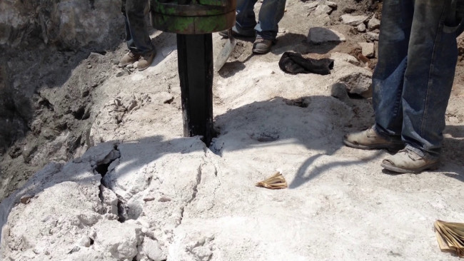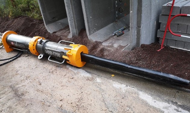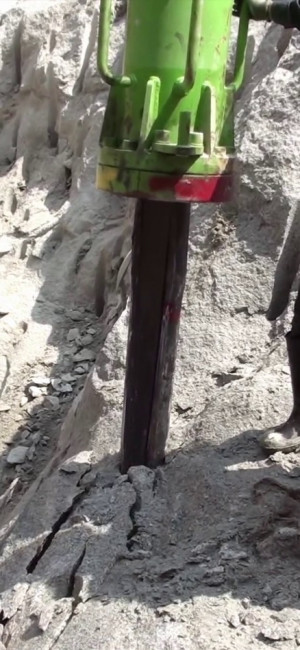 Cet éclateur à lame centrale triangulaire constitue une alternative commode à la fraise hydraulique ou aux explosifs pour un usage en zone urbaine, voirie, dans un tunnel ou en montagne.
