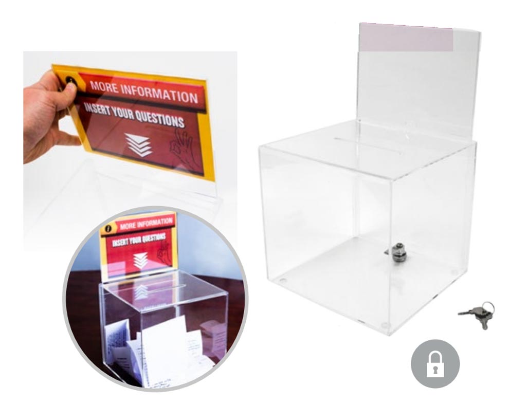 De plus, cette urne acrylique de suggestions est livrée avec deux clés.