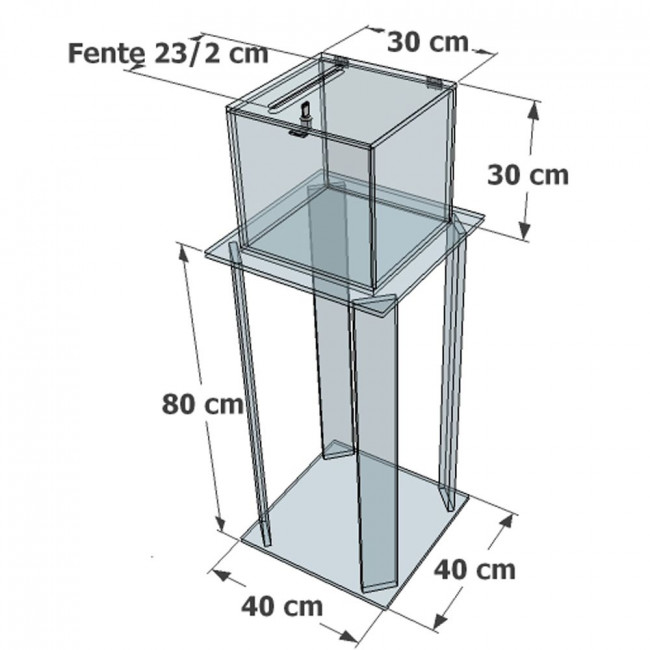 La console en plexiglas, assortie à l’urne, mesure 40 x 40 x 80 cm et est également fabriquée en plexiglas de 1 cm d’épaisseur.