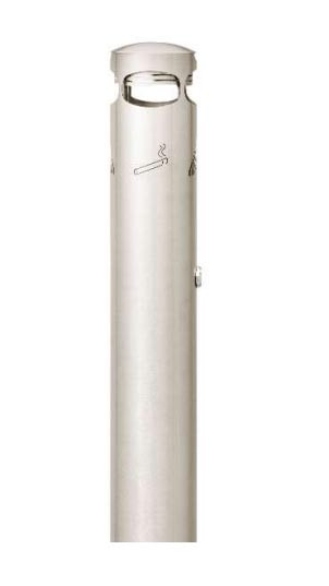 Deux versions : borne à sceller (H 1500 mm) et cendrier mural compact (H 420 mm).