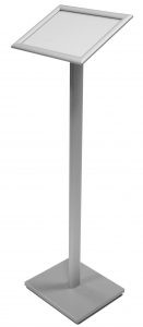 Ce porte-affiche sur pied est composé d’un cadre en aluminium anodisé argent en plus de coins décoratifs en plastique.