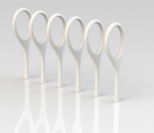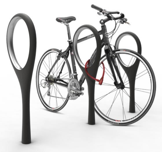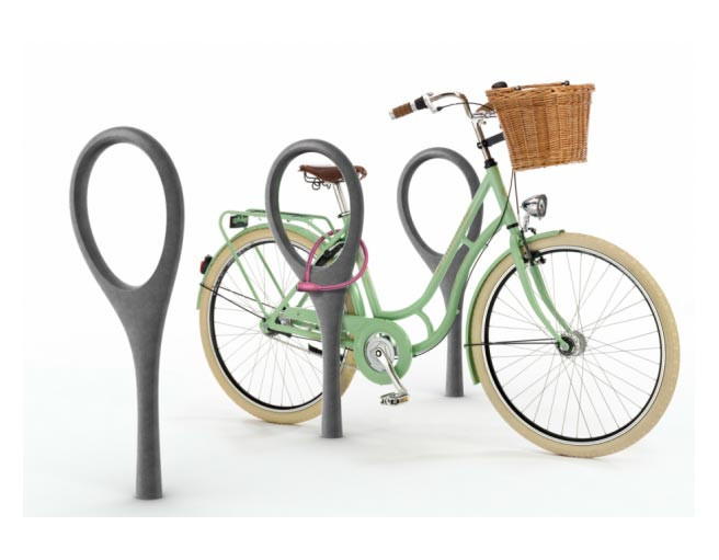 Ce porte-vélos est un élément urbain en béton aux formes sinueuses qui allie élégance et utilité.