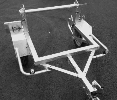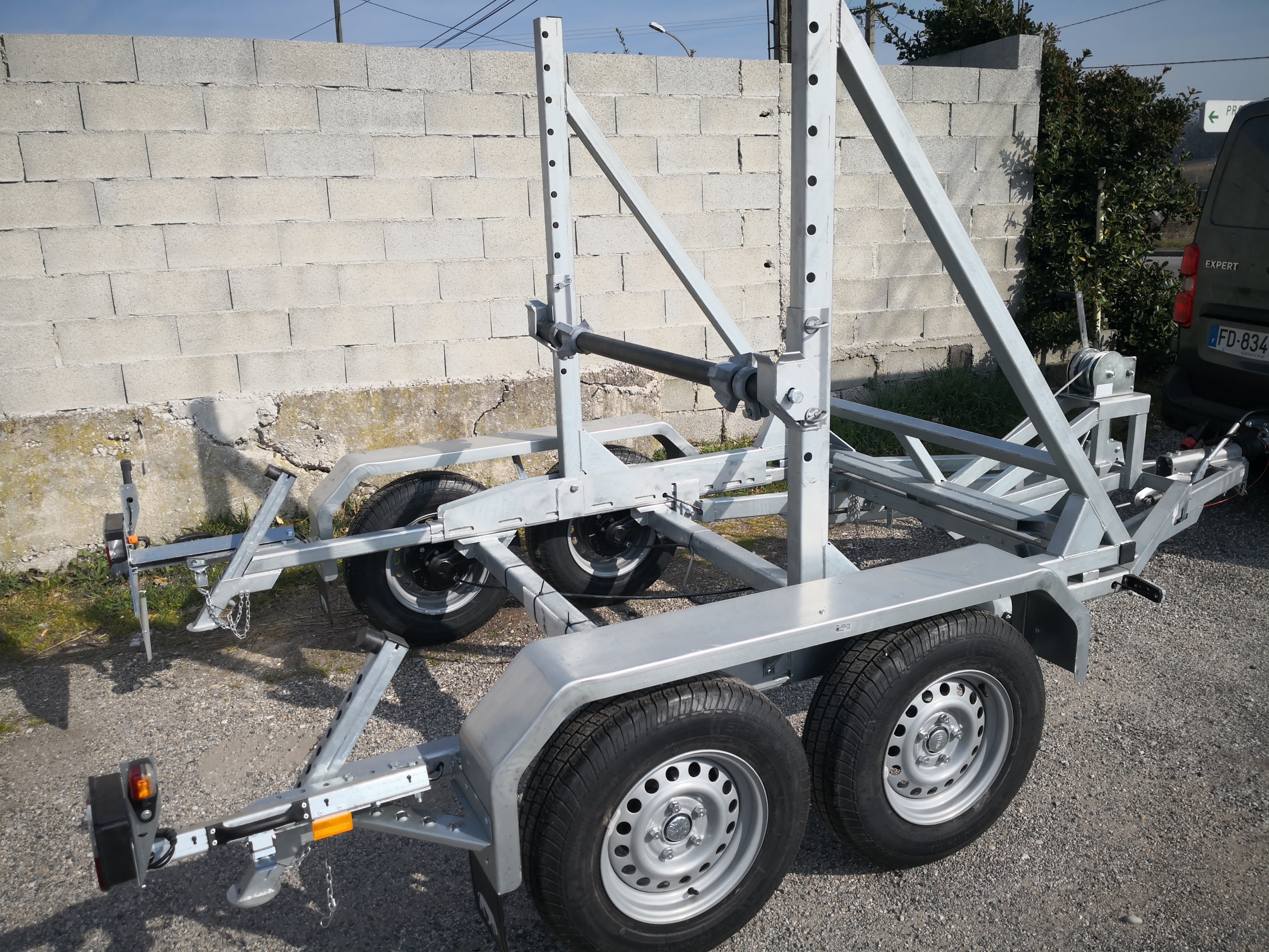 2 essieux freinés par inertie, avec suspension par torsions caoutchouc, capacité 1350 kg.