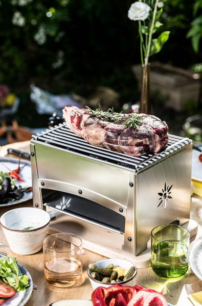 Ce brasero compact de 32 x 22 x 21,5 cm vous offre une cuisson authentique au charbon de bois partout où vous le souhaitez.