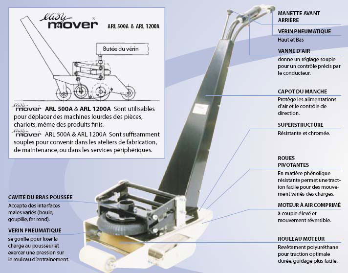 Mouvement avant et arrière - 2 roues rotatives - dispositif d"ancrage par vérin pneumatique