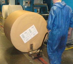 - Le rouleur pneumatique sur batterie permet le déplacement de charges plus lourdes.