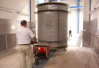 Le pousseur tracteur accompagnant permet de tracter ou de pousser des charges jusqu'à 12 tonnes.